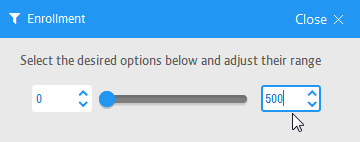 You can also filter on numbers. For example, if you want to look at districts with an enrollment of less than 500, you can click on the filter icon for enrollment and type in the number range you want in the boxes provided: