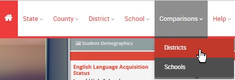 From the menu bar, select comparisons and then select district or school, depending upon what you want to compare: