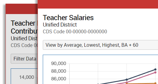 See the average teacher salaries for a district as well as change in salaries and benefits.