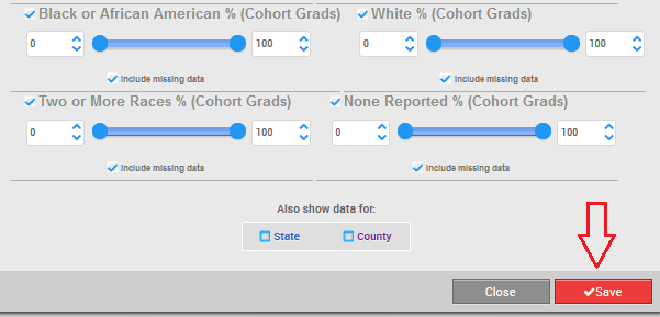 3. Once you have added graduates and/or dropouts by ethnicity, you can use the filters to select the ethnic subgroups displayed and even set minimum and maximum values for each subgroup: